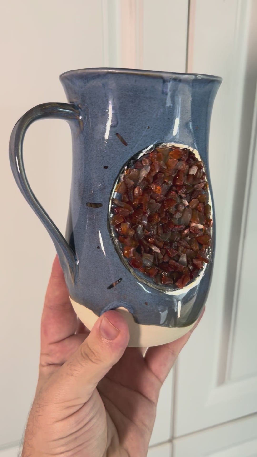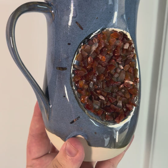 Brew your magic in style with this hand-painted mug, adorned with shimmering 22k white gold. Holding over 12 ounces, it’s the perfect vessel for potions, coffee spells, or moonlit teas. Infused with the spirit of Carnelian, it radiates courage, vitality, and creativity—energizing each sip with fiery intention. Please note: this treasure is hand wash only and not microwave safe—treat it like the sacred object it is.