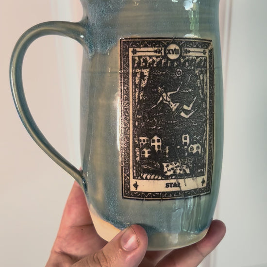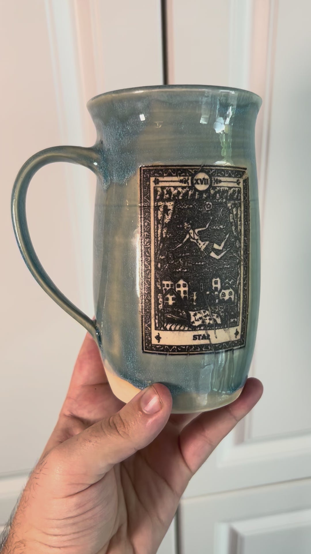 Awaken your spirit with this hand-crafted mug, stamped with the Major Arcana Tarot Card, “The Star.” The energy of The Star embodies hope, guidance, and renewal—reminding you to embrace light, clarity, and inspiration with every sip. Holding over 12 ounces, it’s the perfect vessel for coffee, tea, or any daily ritual. Fully food-grade, microwave-safe, and dishwasher-safe, it’s as practical as it is mystical.