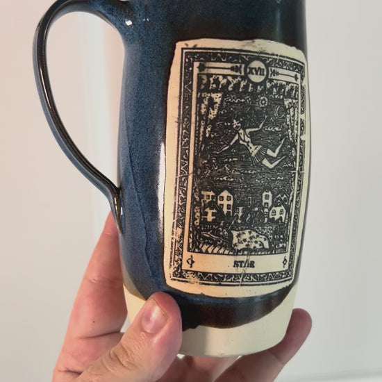 Awaken your spirit with this hand-crafted mug, stamped with the Major Arcana Tarot Card, “The Star.” The energy of The Star embodies hope, guidance, and renewal—reminding you to embrace light, clarity, and inspiration with every sip. Holding over 12 ounces, it’s the perfect vessel for coffee, tea, or any daily ritual. Fully food-grade, microwave-safe, and dishwasher-safe, it’s as practical as it is mystical.