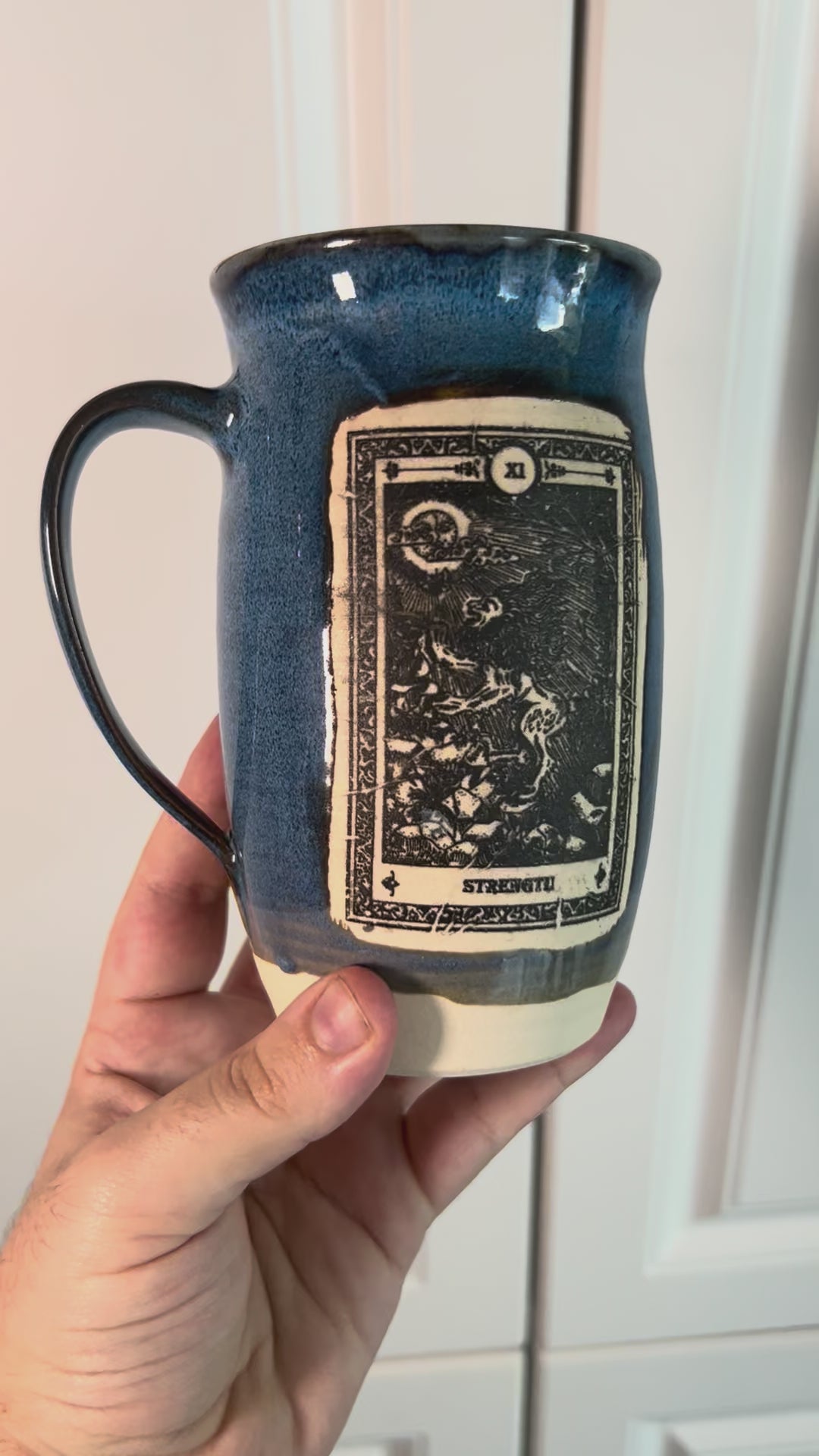 Awaken your courage with this hand-crafted mug, stamped with the Major Arcana Tarot Card, “Strength.” The energy of Strength embodies inner power, patience, and resilience—reminding you to face challenges with grace and confidence with every sip. Holding over 12 ounces, it’s the perfect vessel for coffee, tea, or any daily ritual. Fully food-grade, microwave-safe, and dishwasher-safe, it’s as practical as it is mystical.
